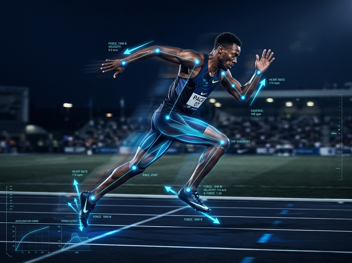 <span style="color: #ffffff; font-weight: 600;">Athletics (sprinting/jumping)</span> — optimise stride mechanics and take-off angles